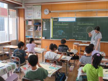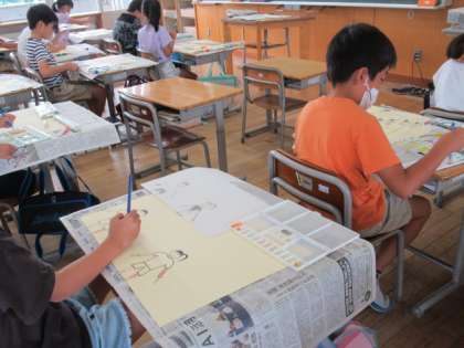 先日より取り組んでいる絵画では、今日は「色のつくりかた」と「はみ出さず丁寧にぬる」ことを課題にして取り組みました。