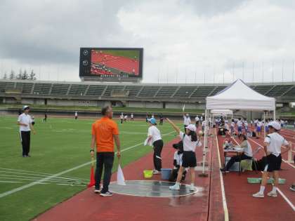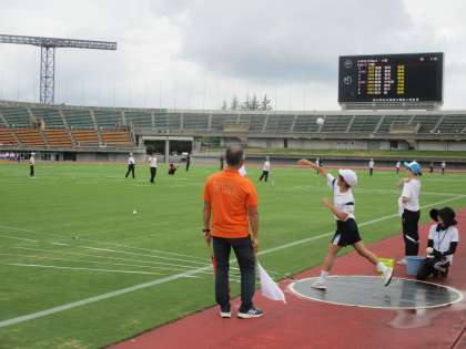 写真は、メインコートでのソフトボール投げです。