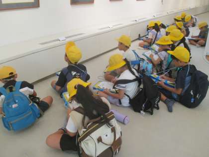 民俗民芸村にある美術館では、水墨画を中心とした作品を鑑賞しました。自分のお気に入りの絵を見付けて、模写しました。