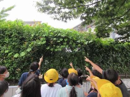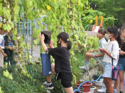 「総合的な学習の時間」では、今月27日にヘチマを調理して試食してみる学習を予定しています。大きすぎず、太すぎないヘチマを見付けたら、収穫して保存していきます。今朝も発見!まさしくちょどよい頃。子供たちの見付ける目はするどいです。