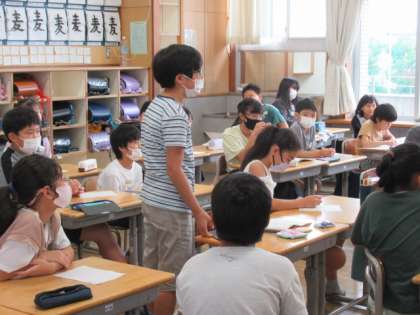 「兵十がごんを追いかけなかった」ことについて前回話し合いました。今日は、そのときの思いを新聞にまとめ、意見交換をしました。教師もいっしょに傾聴します。