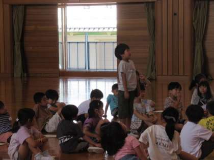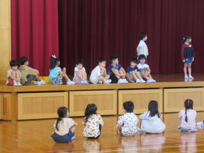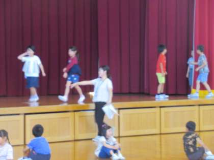 「おむすびころりん」を体育館で練習しました。前と後ろで同時進行です。