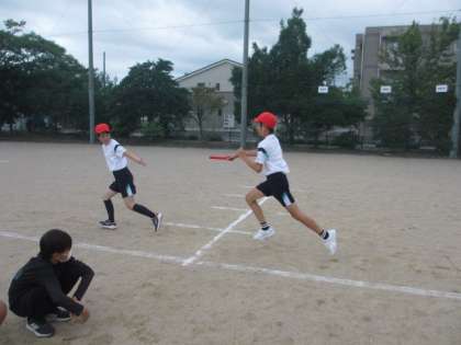 リレーフェスティバルに向けて練習をしています。どの団も、走順やバトンパスを工夫しながらタイムを縮めていっています。