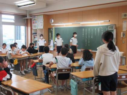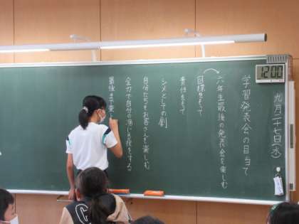 学習発表会の目当てについて話し合いました。小学校生活最後の学習発表会。意味のあるものにしようと一人一人が真剣に考えました。