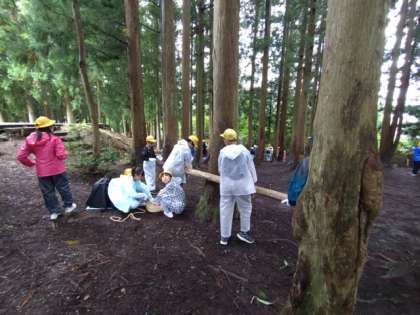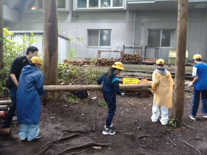 この活動では、ロープも大活躍します。支える子、縛る子、連携して作業を進めました。