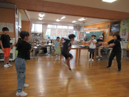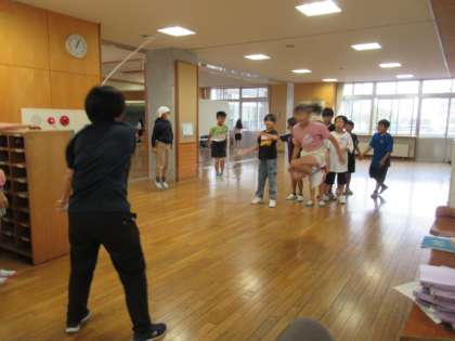 外で運動できない日が増えてきています。リレーフェスティバルも近い!室内でできる体力つくりをと、ダブルダッチに挑戦しました。軽やかに跳ぶ子供たちの姿がすばらしい!