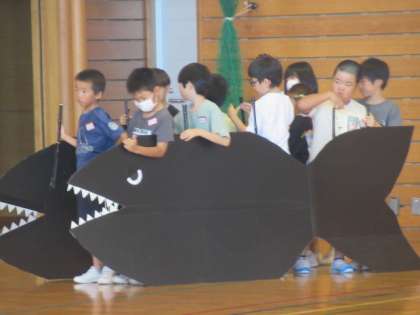 大きな黒い魚が!演技もリアルになってきました。