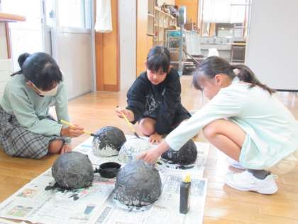 登校したら、さっそく学習発表会で使用する道具をつくっている子供たちです。子供自身でつくることにより、発表に対する意欲も高まります。