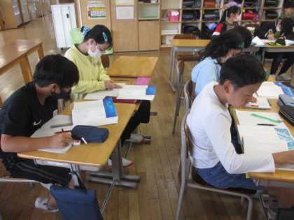 行事が続く6年生ですが、気持ちを切り替えてしっかり学習も頑張っています。「やまなし」の情景を想像したり、角柱や円柱の体積の求め方を考えたりとみんな真剣です。さすが6年生です。