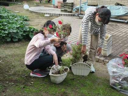 中にはまだ少し咲いているものもありましたが、美しいうちにさようならをすることがお花への思いやりです。このいのちを次へつなぎたい、と種を採っている子供もいました。