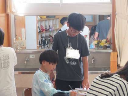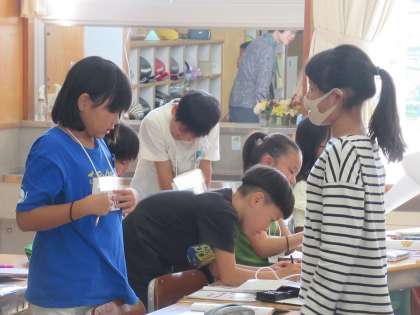 「I have 〜」で始めるヒントが3つ。それを聞いてアルファベットを当てます。前半はヒントづくり、後半は友達とのコミュニケーションによって楽しみました。