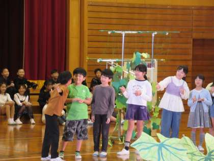 ヘチマと関わって七箇月。そしてヘチマの研究は現在も進行中です。学習発表会では、これまでの歩みの一端を見ていただきました。調理してみたこと、たわしをつくったこと、除草や支柱の手入れ等、これまで学習してきたことはたくさんあります。すっかりヘチマとなかよしになり、愛着をもっている子供たちです。