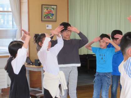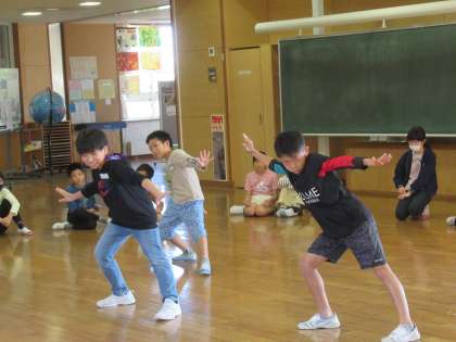 今日は、専科の先生と広い教室で輪踊りを体験しました。子供たちは、少ない経験とは思えないしなやかな動きで、おわらに親しむことが十分にできていました。