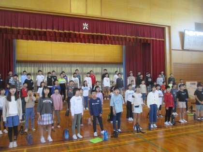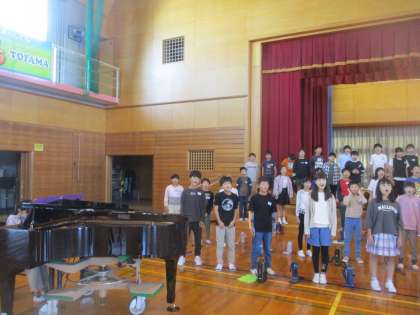 5年生の合唱練習はまだまだ終わりません!来週の区域連合音楽会に向けて、オーバードホールに合わせた並び順に変えて練習を行っています。さらに美しい歌声を目指してレッツ!チェンジ!!