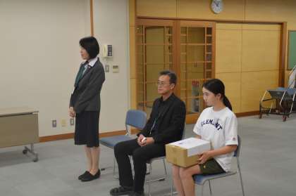 交通安全協会の方々から、光陽っ子へ反射材が贈られました!児童代表として、6年 坂越美柚さんが反射材を受け取りました。光陽っ子の皆さんは、反射材を付けて交通安全に気をつけましょう!