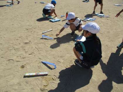日なたと日かげでは、地面の温かさがどのくらい違うのか棒温度計を使って調べました。日なたは日光によって温められることが分かりました。