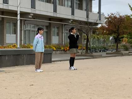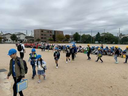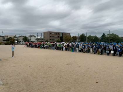 恒例の縦割りウォークラリーを行います。運営委員会の子供たちの司会で始めの式を行いました。