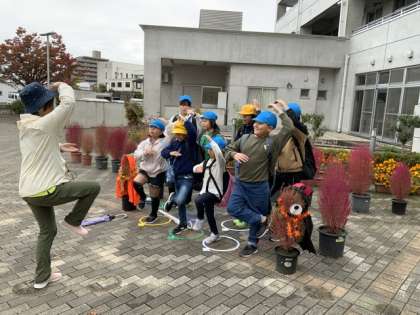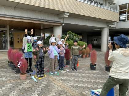 にこさわ広場でのミッションは、くじを引いて、指示されたポーズをします。