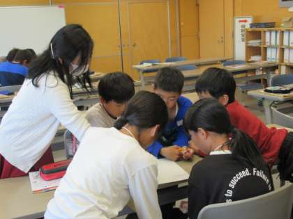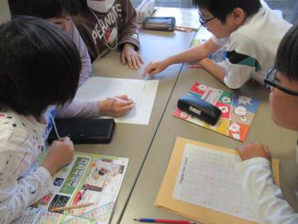 外国語科の学習では、それぞれのアルファベットがどのようにして出来上がったのか、クイズ形式で考えました。子供たちは、楽しく解いていくことができました。