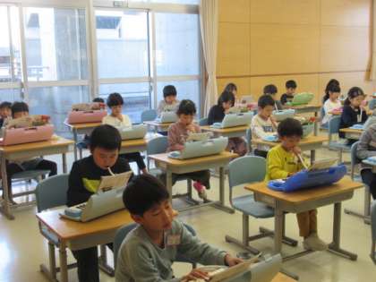 鍵盤に慣れるよう何度も繰り返しています。今日は、この後は子供たちは、音楽つくりの学習をします。