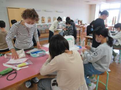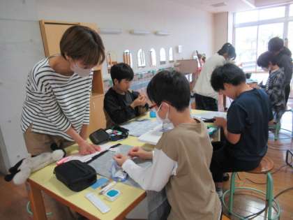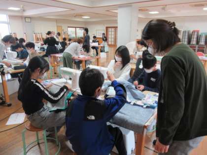 ボランティアの方が多数お手伝いしてくださいました。おかげで、子供たちも安心してミシンを扱うことができます。