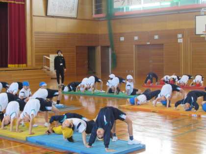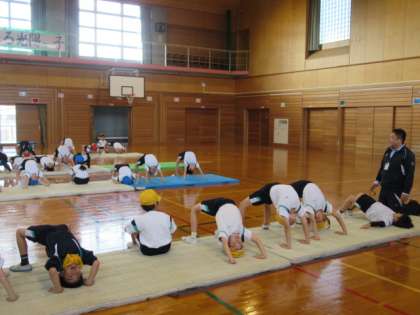 ブリッジに挑戦です。だれが最後まで残るか全員で挑戦しました。「まだまだいける!」と強気の子供たちです。