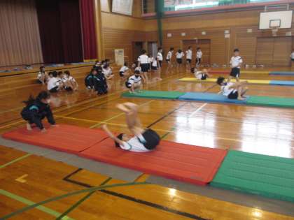 マット運動ウィークに入り、子供たちは色々な技の練習をしています。難易度の高い壁倒立もさらりとこなすことろはさすが6年生です。怪我に気を付けながらそれぞれの技術を磨いていきましょう。
