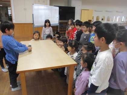 今日はお楽しみ会をしました。係ごとに計画をたて、クイズやフルーツバスケット、手品等をしました。楽しい出し物に大盛り上がりでした!!