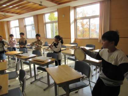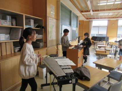「パフ」はとても楽しい曲です。主な旋律は、リコーダーで担当します。この「パフ」をアンサンブルにしてつくり上げます。さっそく分かれての練習です。