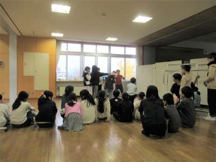 2限後のさんさんタイムを活用して、係のミニ発表会を行いました。たくさんの子供たちが集まり、発表する友達の演技を応援し合いました。