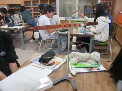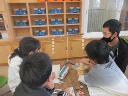 毎日、様々な学習に励んでいます。理科では釣り合いのきまりを、実験用てこを使っていろいろと試しながらグループで見つけています。家庭科では、バランスのよい献立を計画しているところです。