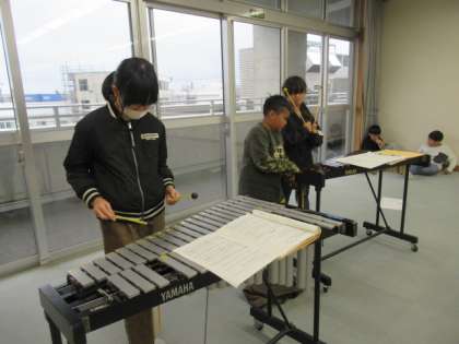 教室を6つのグループに分けて「茶色のこびん」のアンサンブルに取り組みました。鉄琴や木琴、低音パートなど、リコーダー以外の楽器をいろいろ活用して、すてきなひびきをこれからつくっていきます。