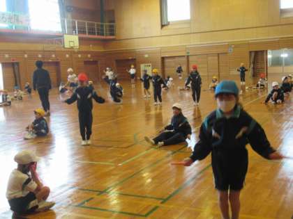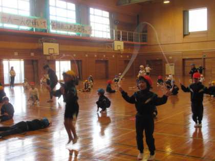 冬季はなわとびに力を入れていきます。さあ、みんなで競争してみました。