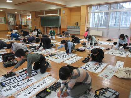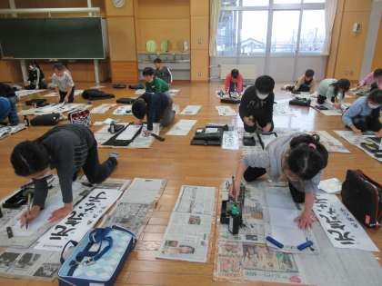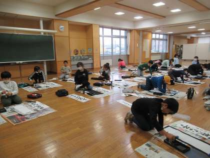4年生は「元気な子」に挑戦します。何度も練習してきた「結び」が登場します。今日は初めて1枚書いてみました。これをスタートとして、これからどれだけ上手になっていくのか楽しみですね。