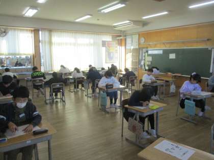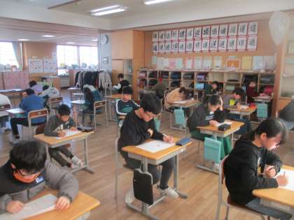 今週は学習のたしかめテストウィークです。今日は国語のテストを行いました。2学期に学習したことを一生懸命思い出しながら、何度も見直しをして取り組む子供たちでした。