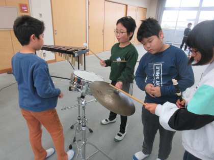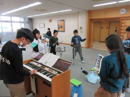 グループに分かれて「キリマンジャロ」の器楽合奏に取り組んでいます。