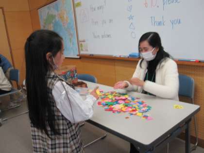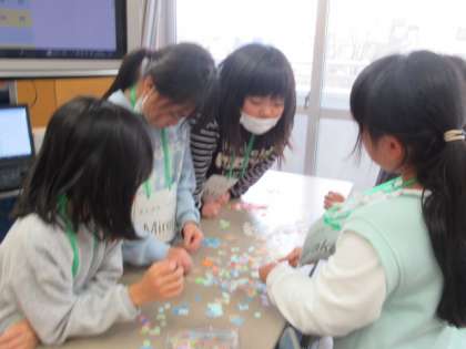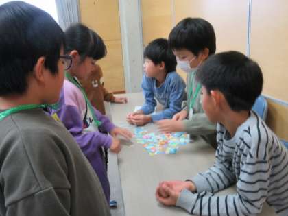 ピースをお店から購入して、オリジナルのクリスマスカードをつくります。お買い物は全て英語での会話で行います。お店役、お客役それぞれなりきって楽しく会話しています。