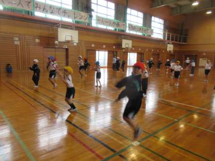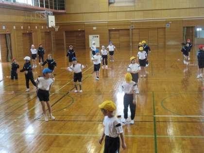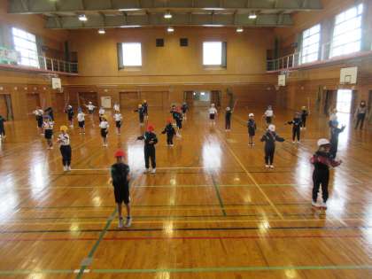 今日は、あや跳びと二重跳びに挑戦しました。どちらの技も、スモールステップで腕の動きや跳ぶタイミング等を身に付けていきました。「もうちょっとでできそう!」「1回できたよ!」と嬉しそうな子供たち。これからも楽しく頑張りましょうね!
