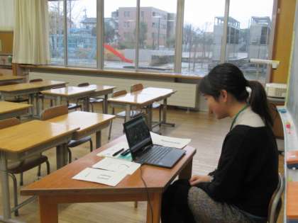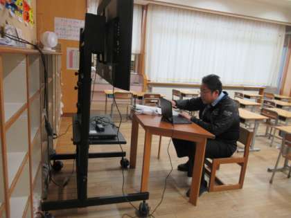 「おはようございます」とMeetでの朝の会の始まりです。ディスプレイには、たくさんの子供たちの顔が見えます。今日も一日家庭でがんばろうね。