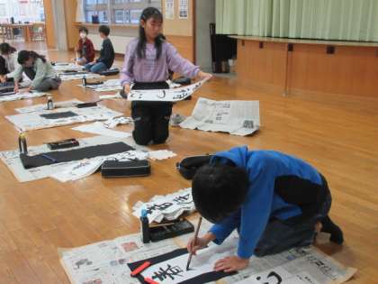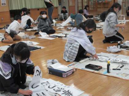 6年生は「春待つ心」に取り組みます。気落ちを落ち着かせて取り組んでいます。