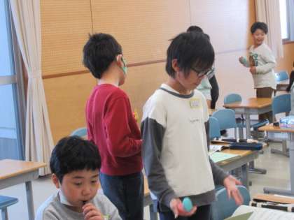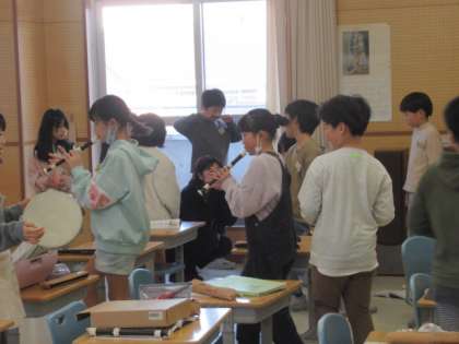 グループでアンサンブルに挑戦しています。曲想に合わせてパレードしながら演奏している子供もいます。