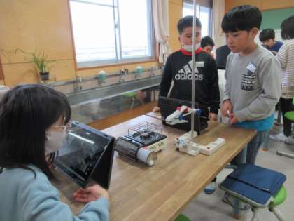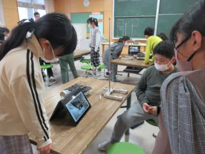金属の棒を熱してみました。そしてクロームブックで録画していきました。子供たちの真剣さが伝わってきます。