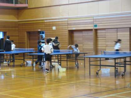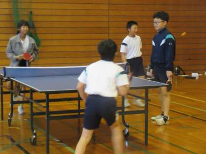 体育館では、卓球クラブとボール運動クラブが活動していました。