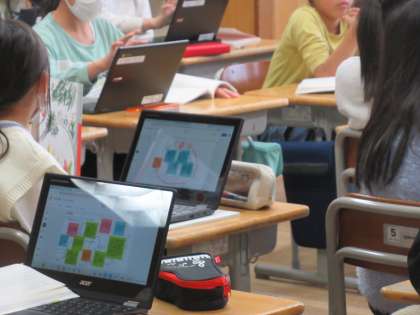 「プラタナスの木」の叙述から表に整理していきました。ジャムボードで一人一人の考えを共有していきます。クロームブックが有効に働いています。