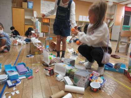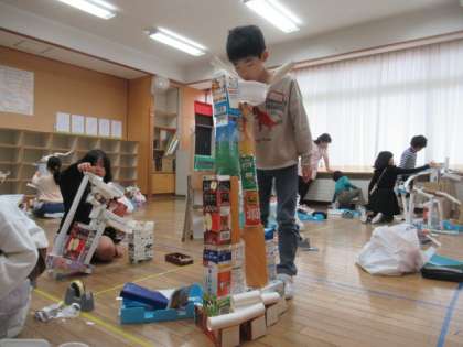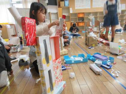 子供たちの背丈ほどの高さ、長さの大きな仕掛けが出来上がってきています。これは楽しい!