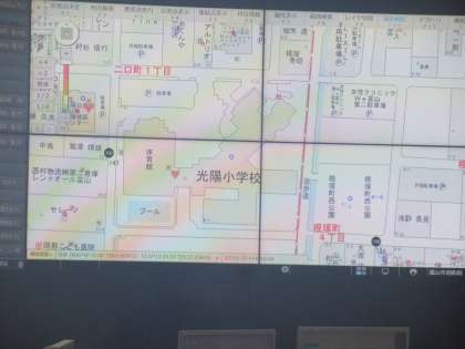 通信指令室では、大きな画面に映し出される情報や働いておられる署員の方の様子を見たり、119番に電話するときに大切なこと等をクイズ形式で教えていただいたりしました。