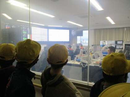 通信指令室を見学しました。仕事の内容や、実際に電話をかけるときに気を付けることなどを教えてもらいました。