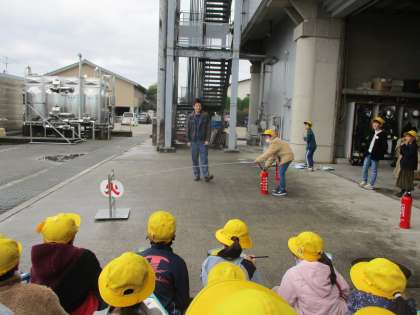 消火器の使い方を教えてもらいました。何人か実際に体験させてもらいました。