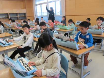 鍵盤ハーモニカで「きらきらぼし」に挑戦中です。ドからソへ音が移るときがまずポイントです。少しずつ慣れていきましょうね。