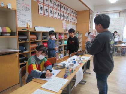 「ペットボトルキャップへらし隊」の発表を下級生を紹介して行います。準備は万端、リハーサルをして本番に備えます。次の時間がいよいよフェスティバルです。